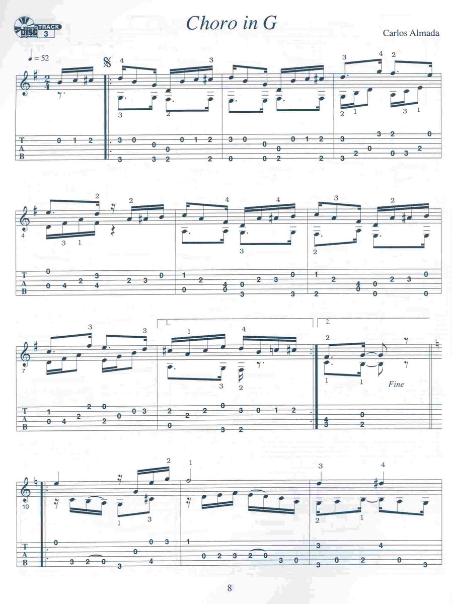 CHORO - brazilská populární hudba, která vznikla v 19.století v okolí Rio de Janeiro. Hudebně a rytmicky je založeno nejčastěji na kombinaci stylu samba a bossa nova a nejčastěji je hrána na kytaru nebo další strunné nástroje a flétnu, klarinet nebo saxofon a percussion. Tento sešit Vám nabízí 13 jednoduchých brazilian choros pro klasickou kytaru. Všechny skladby jsou v úpravě kytarová linka a tabulatura.V sešitě je uveden kód a stránky vydavatele, na kterých je možné si poslechnout a případně stáhnout nahrávky všech skladeb. Velmi zajímavý sešit !!!