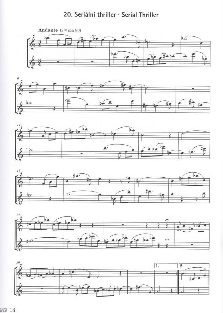 Sbírka 20 originálních duet pro sopránovou a altovou zobcovou flétnu je určená žákům šesti a sedmi let. Skladby lze hrát jako duo sólistů, ale jsou také velmi vhodná pro skupiny hráčů na sopránovou a altovou zobcovou flétnu. V notách jsou vyznačena nejdůležitější místa na nádech i návrh artikulace. Sbírka zahrnuje skladby zkomponované v různých stylech a formách (kánon, staré tance, fuga, blues atd.) ajsou seřazeny podle vzrůstající technické obtížnosti i hudební náročnosti.