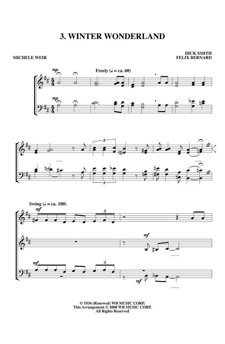 Směs tří známých vánočních písní ve vynikajícím a krásném jazzovém arražmá od  Michele Weir pro SATB vokální soubor - a cappella.
