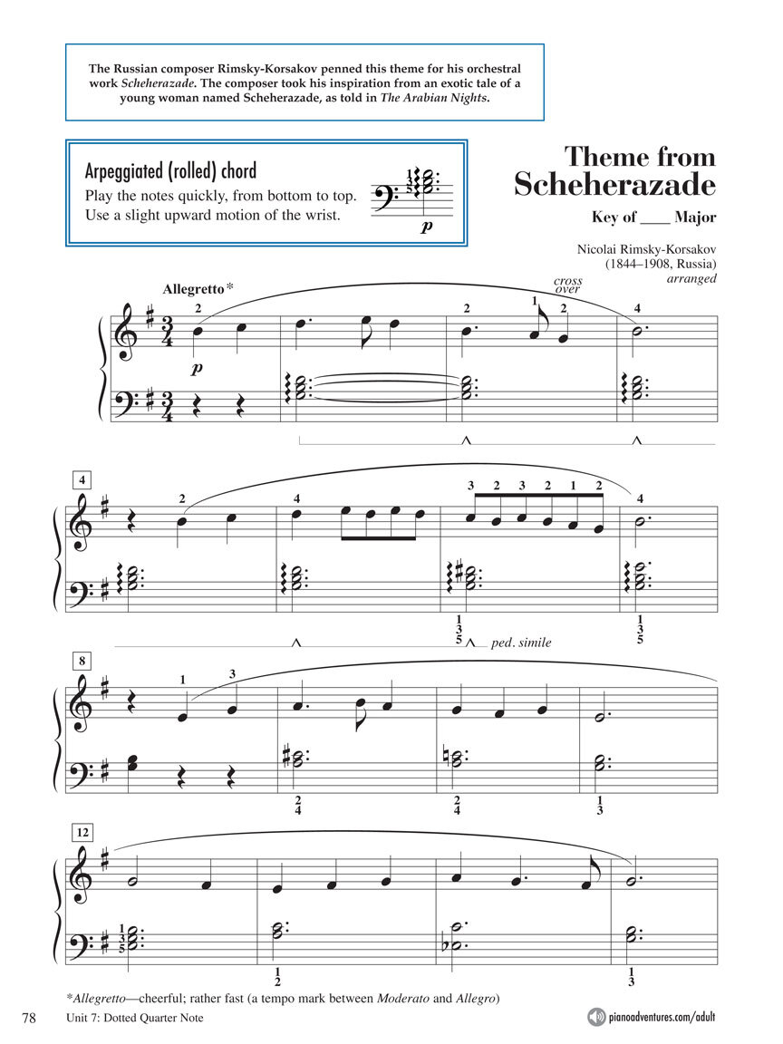Adult Piano Adventures - je velmi dobře zpracovaná dvoudílná škola hry na piano pro dospělé, kteří chtějí zvládnout hru na piano pro své vlastní potěšení. Druhý díl Vás seznámí a na spoustě příkladů velmi známých melodií, písní a evergeenů ukáže, jak hrát podle akordových značek. Chcete-li se naučit hrát na piano nebo obnovit Vaše zapomenuté klavírní schopnosti z mládí, pak je tato dvoudílná škola hry na piano určena právě pro Vám !!!