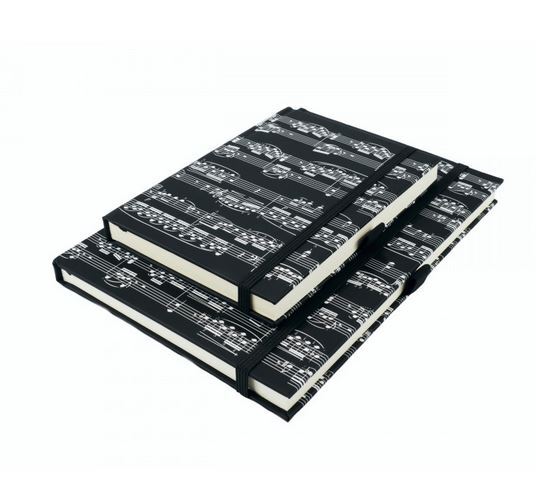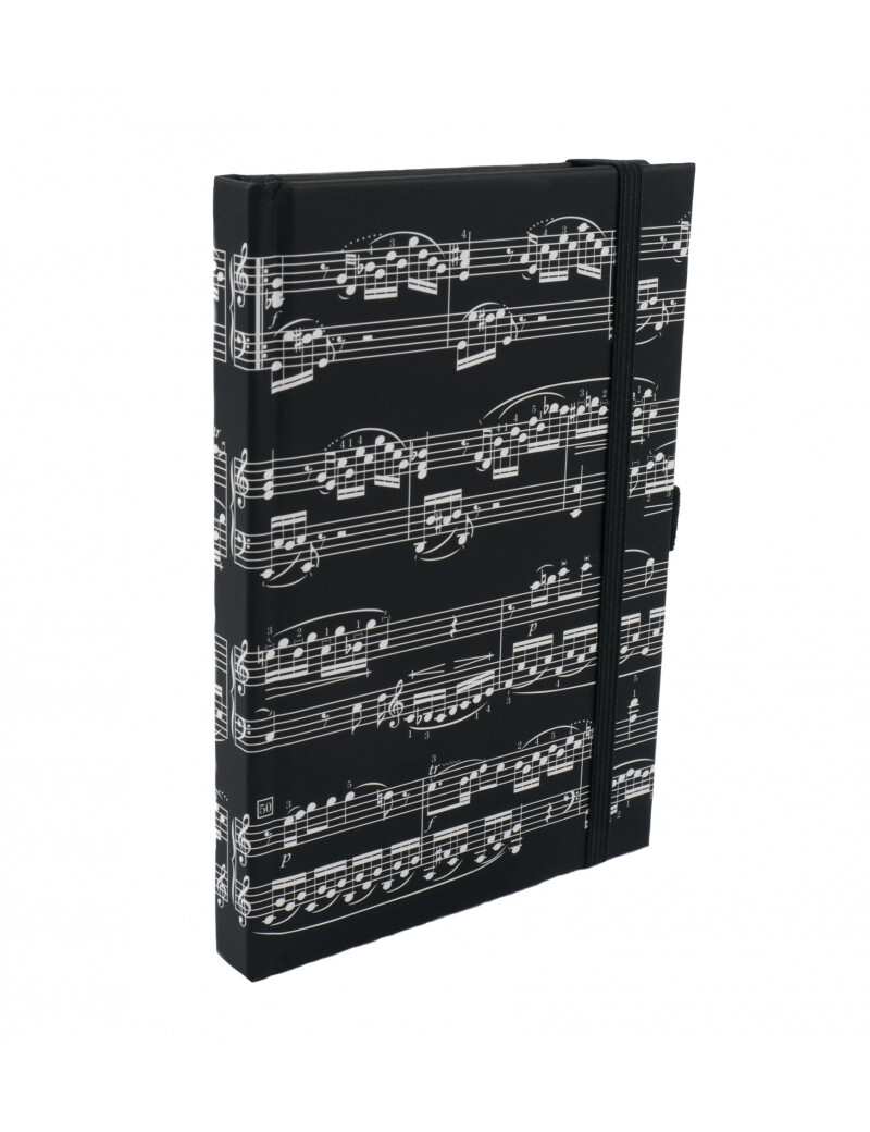 Agifty Notebook Sheet Music Black A6 - zápisník A6 s motivem notové osnovy, černo-bílý