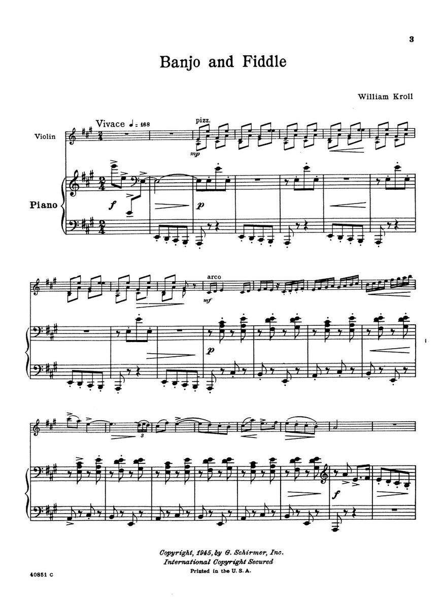 BANJO AND FIDDLE by William Kroll / housle a klavír