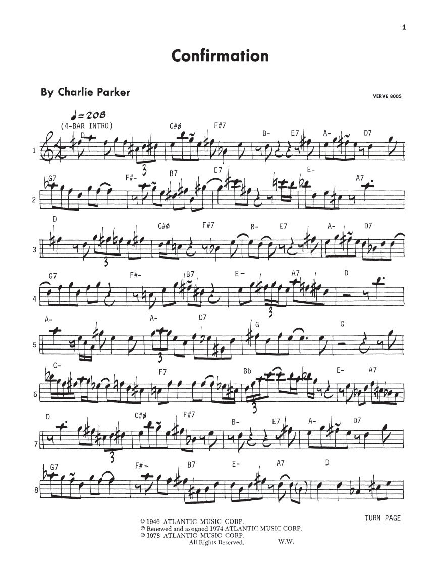 Ah-leu-chaAnother HairdoAnthropologyAu Privave (No. 1)Au Privave (No. 2)Back Home BluesBalladeBarbadosBillie's BounceThe BirdBird Get The WormBloomdidoBlue BirdBlues (Fast)Blues For AliceBuzzyCard BoardCelerityChasin' The BirdCherylChi ChiConfirmationConstellationCosmic RaysDewey SquareDiverseDonna LeeK.C. BluesKim (No.1)Kim (No.2)Klaun StanceKo KoLaird BirdLeap FrogMarmadukeMerry-go-roundMohawk (No. 1)Mohawk (No. 2)OrnithologyAn Oscar For TreadwellParker's MoodPassportPerhapsRed CrossRelaxing With LeeScrapple From The AppleSegmentShawnuffShe Rote (No. 1)She Rote (No. 2)Si SiSteeplechaseThriving From A RiffVisaWarming Up A RiffYardbird SuiteMoose The MoocheMy Little Suede ShoesNow's The Time (No. 1)Now's The Time (No. 2)
