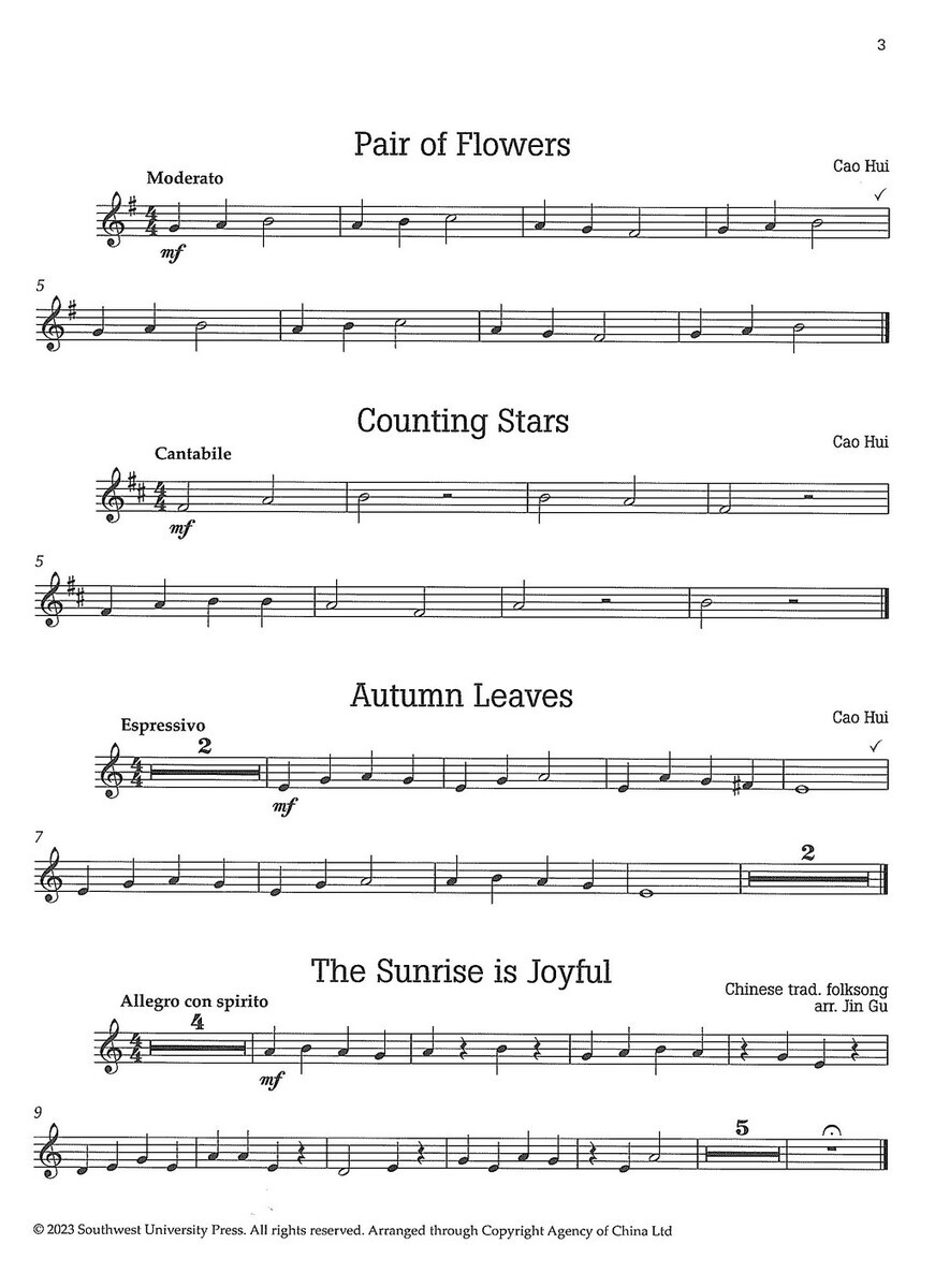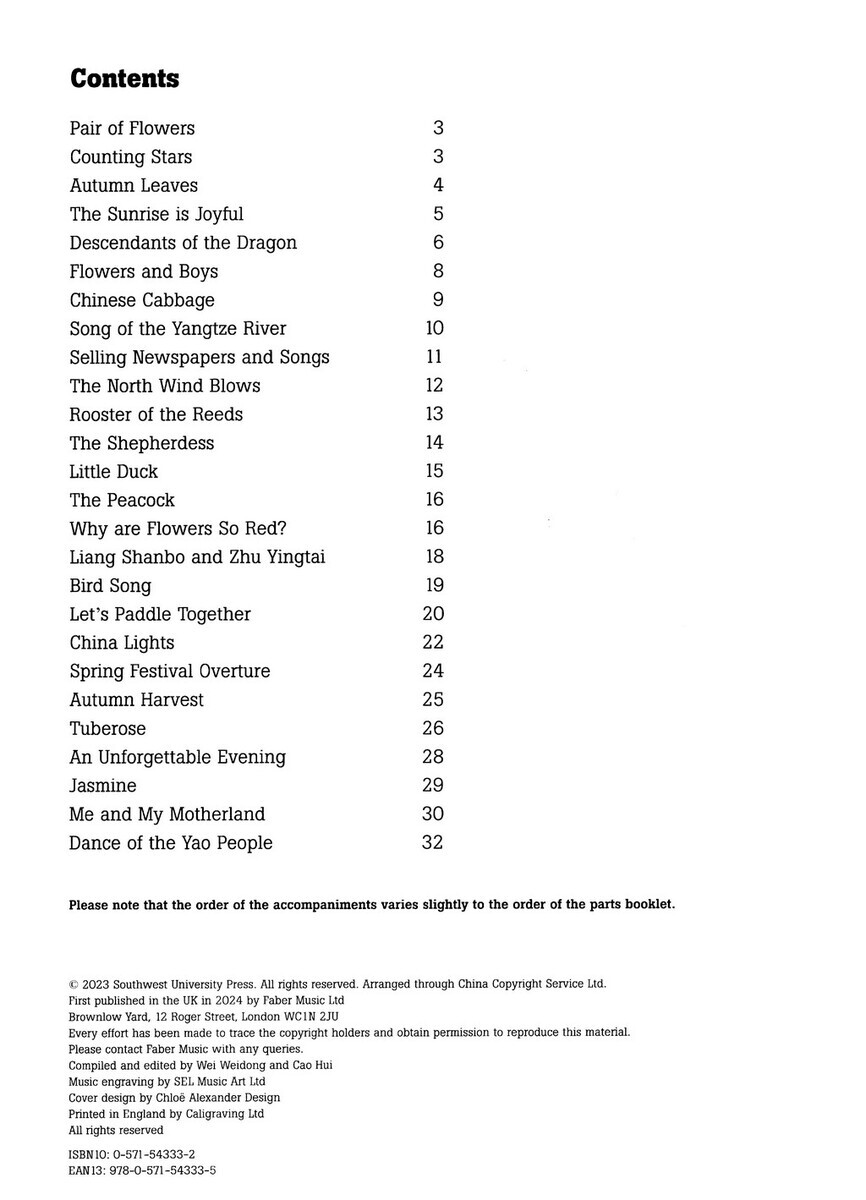 Chinese Tunes je kolekce čínských lidových písní a atraktivních původních melodií čínských skladatelů pro sólový nástroj s doprovodem klavíru. Obtížnost skladeb je vhodná pro začínající až mírně pokročilé hráče do 2. ročníku. Každá skladba je nejen hudebně poutavá, ale také pedagogicky hodnotná – pomáhá rozvíjet techniku hry, hudební výraz a cit pro melodii.