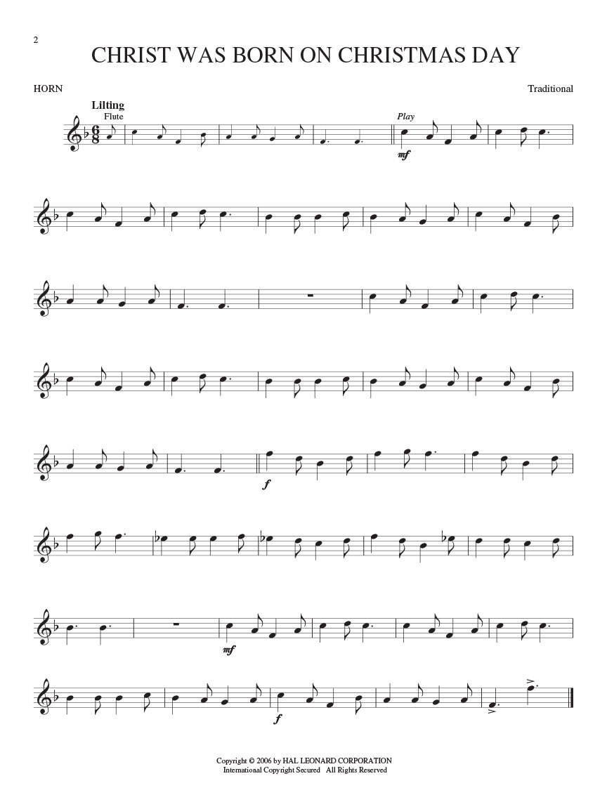 Christ Was Born On Christmas DayDeck The HallThe First NoelGood Christian Men, RejoiceGood King WenceslasHark! The Herald Angels SingI Heard The Bells On Christmas DayIt Came Upon The Midnight ClearJoy To The WorldO Christmas TreeO Come, O Come ImmanuelO Little Town Of BethlehemSing We Now Of ChristmasWe Three Kings Of Orient AreWe Wish You A Merry Christmas