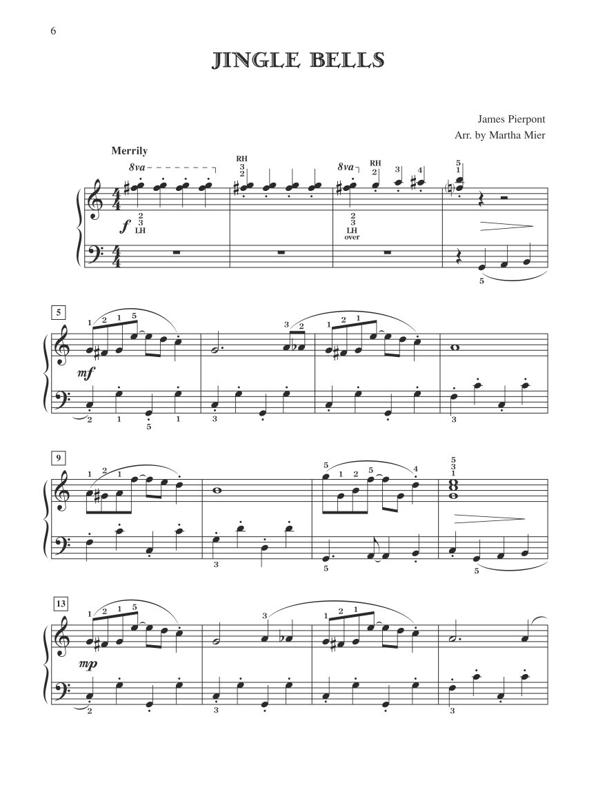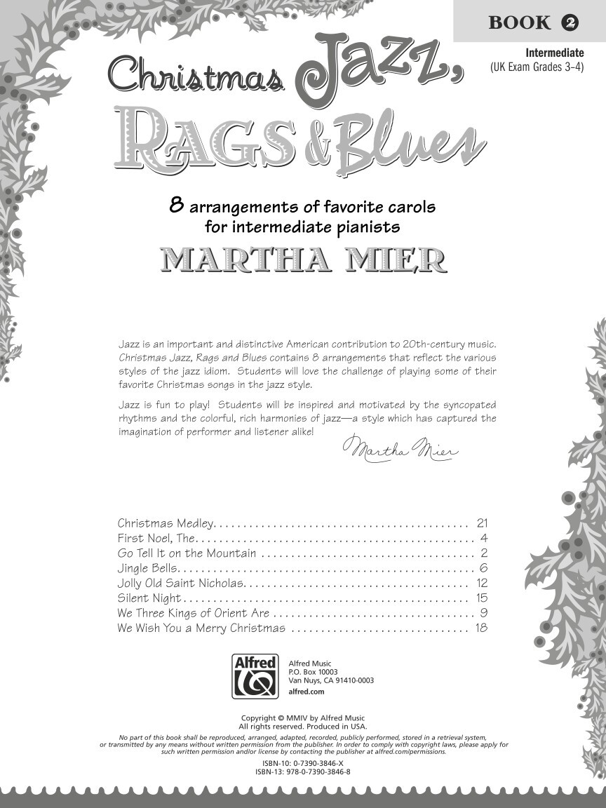 Osm známých vánočních písní v příjemném jazzovém aranžmá odMartha MIER, známé americké učitelky klavíru, aranžerky a skladatelky populárních skladeb pro mladé klavíristy. Obtížnost 4+