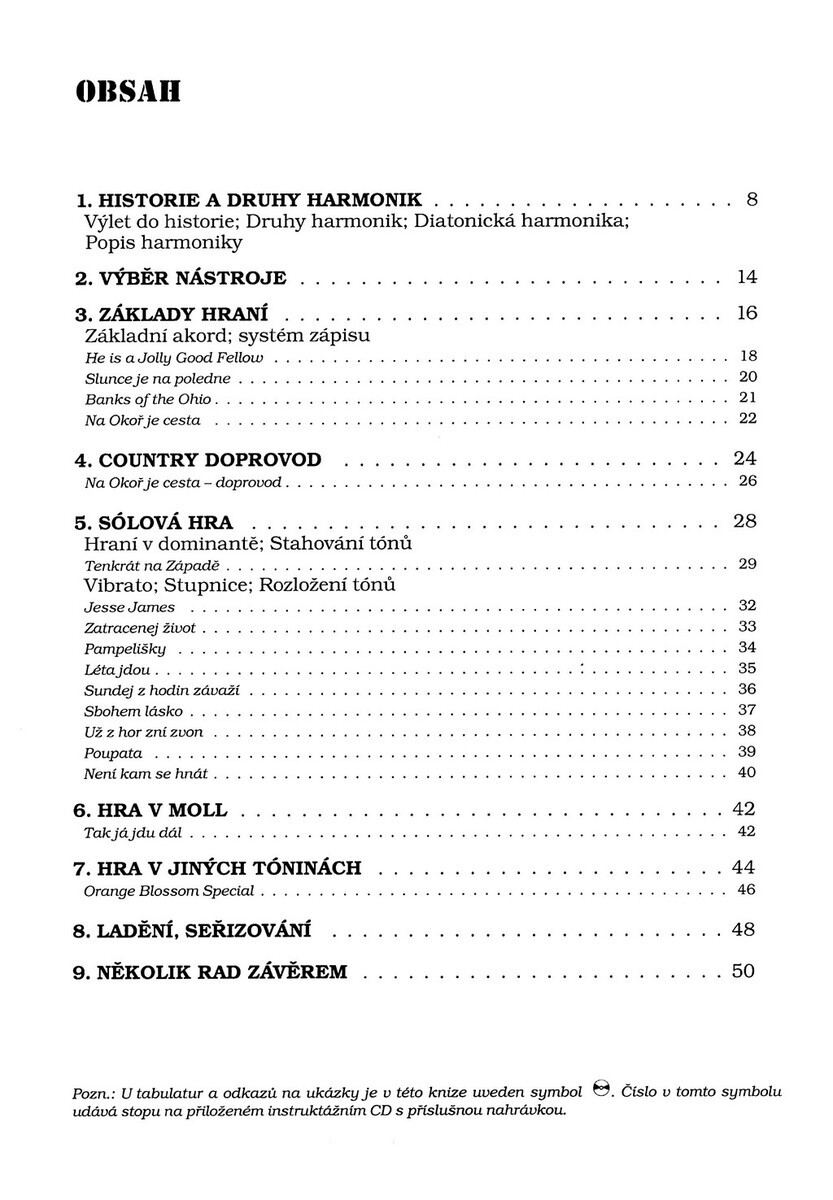 Foukací harmonika je malý jednoduchý nástroj, na který se základy naučí i malé děti,ale který přitom skýtá překvapivě velké možnosti při hraní pokročilých sól i při doprovodu v country hudbě i v jiných žánrech. Tato Škola hry Tomáše Linky Vám přináší především souhrn rad a zkušeností, které by měl znát každý, kdo chce tento zajímavý a jednoduchý nástroj alespoň trochu ovládat. Základní kapitoly této školy jsou historie a druhy harmonik, výběr nástroje, základy hry, country doprovod, sólová hra, hra v moll, hra v jiných tóninách, ladění a seřizování nástroje a několik rad na závěr. Na přiloženém CD jsou nahrány příklady a ukázky skladeb uvedené v tomto sešitě pro Vaši představu, jak má hra na foukací harmoniku správně znít.