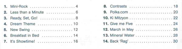 Mini-RockLess than a MinuteReady, Set, Go!Dream ThemeNew SwingBreakfast in BedIt´s Showtime!ContrastsPolka.comKi MitzyonGive me FiveMarch in MayMineral WaterBack Rag