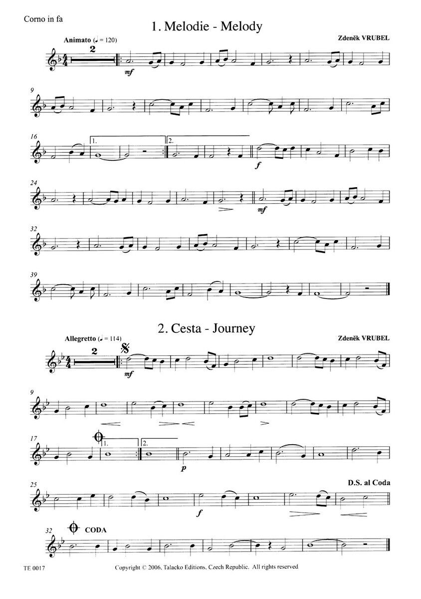Sbírka deseti přednesových skladeb pro f horn s doprovodem klavíru od Zdenka Vrubela (1950). Sešit obsahuje klavírní doprovod plus samostatný part pro f horn.