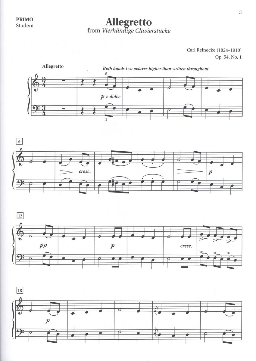 Velmi zajímavý titul velmi jednoduchých klavírních duet klasické hudby upravených pro žáka a jeho učitele, nebo také herně zdatnějšího spolužáka. Part žáka (PRIMO) je napsán v obtížnosti partu 3+, part učitele (SECONDO) je napsán v obtížnosti 4+. Zajímavá série klasických duet s rozdílnou obtížností klavírních partů!