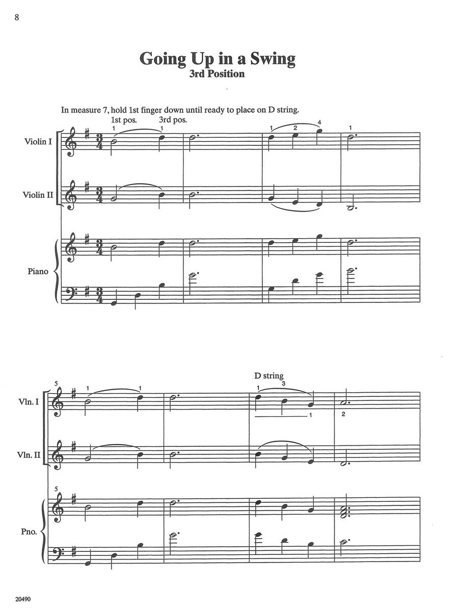 „Easy Songs for Shifting in the First Five Positions“ (Snadné skladby pro přechody v prvních pěti polohách) je sbírka krátkých skladeb, kterou Kathryn Bird Kinnard napsala pro housle s cílem usnadnit hráčům zvládnutí posunů v prvních pěti polohách.  Všechny melodie obsažené v této knize jsou chytlavé a snadno zapamatovatelné, a skladby jsou řazeny postupně a umožňují systematické osvojování nové techniky bez nadměrného technického nebo výrazového zatížení.  Na začátku každé nové polohy jsou uvedeny krátké cvičení a prstoklady.  Většina skladeb v sešitě je napsána pro dvoje housle a s klavírním doprovodem.