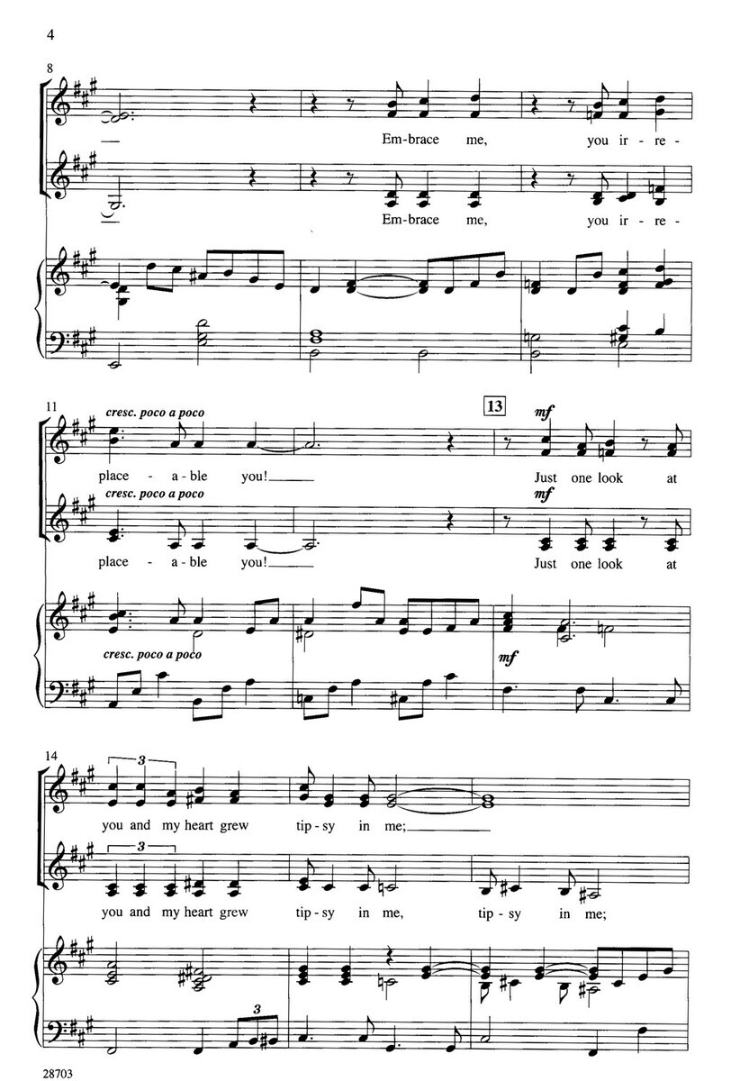 Embraceable You je nádherný evergreen a pravděpodobně jedna z nejznámějších milostných písní od George Gershwin. Krásné aranžmá od Jay Atlhouse pro SSAA vokální soubor s klavírním doprovodem.