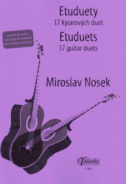 Tento sešit Vám nabízí 17 jazzových duet od Miroslava Noska pro dvě kytary. Etuduety jsou určené pro dva žáky nebo učitele a žáka, případně pro sólovou hru s doprovodem druhé kytary, který si můžete stáhnout na níže uvedeném odkaze. Níže uvedený odkaz Vám umožní stáhnout sizip soubor (cca 100 MB), který po rozbalení obsahuje nahrávky všech v sešitě uvedených skladeb a to ve třech provedeních - v plné verzi, bez prvního hlasu a bez druhého hlasu. Můžete si tak nejen poslechnout, jak dueta zní, ale také hrát nebo cvičit skladby samostatně bez druhého kytaristy.www.enoty.eu/download/etuduety_vse_mp3.zip