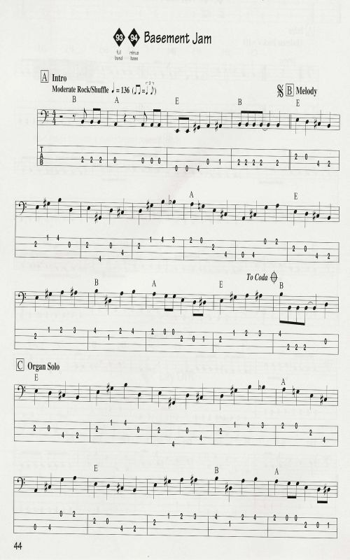 All Along the SidewalkIt Used to Be MineS.O.S.Another HueBridgeMuted GrooveBlues-RockAnthem RockHey, JimAll That JazzProgressively FasterNice PantsMachine-likeRidin´the BusSlow TuneJam in GJamaican GroovePop-RockBlues in GRiff BluesQuick Change ArtistTri-pl-etMinor Bird BluesTriplet RestsShuffle GrooveTexas Blues12/8 MeterDelta BluesShuffling in ChicagoFifth Position ChromaticsC Major ScaleA Minor ScaleWater ChestnutZodiakKing of SpadesEasy OctaveStandard´50sMedium RockSad SongLatin GrooveEasy Groovin´Wrap It UpRock´n ´ RollMove OverFollow the Bass DrumKick It!Yer Basic BalladBass OstinatoCatch the KicksStill Can´t WaitSlidin´ and Glidin´My GrooveWild SlideSlide This!Pick You UpHammer JamFrightfulPush and PullSteady-Pullin´ GrooveAll ThumbsSlap This!FunkyThumbs DownSnap, Crackle, PopPoppin´ OctavesSlap BassSlap-Pop GrooveGolden OldiesRock SolidDark MetalGlam RockTop 40 BalladPop-Rock BassChain-linkJust a SliceMotown GrooveR&B BassHot in the SunJamaican Me CrazyGet FunkyStaccato FunkSlap HappyWalk on OverWho´s the Bossa Nova?Country BoyTennessee RockDisco DazeDon´t Stop Hip-HopLay Off!Nervous (full band)Nervous (minus bass)Basement Jam (full band)Basement Jam (minus bass)Dim the Lights (full band)Dim the Lights (minus bass)