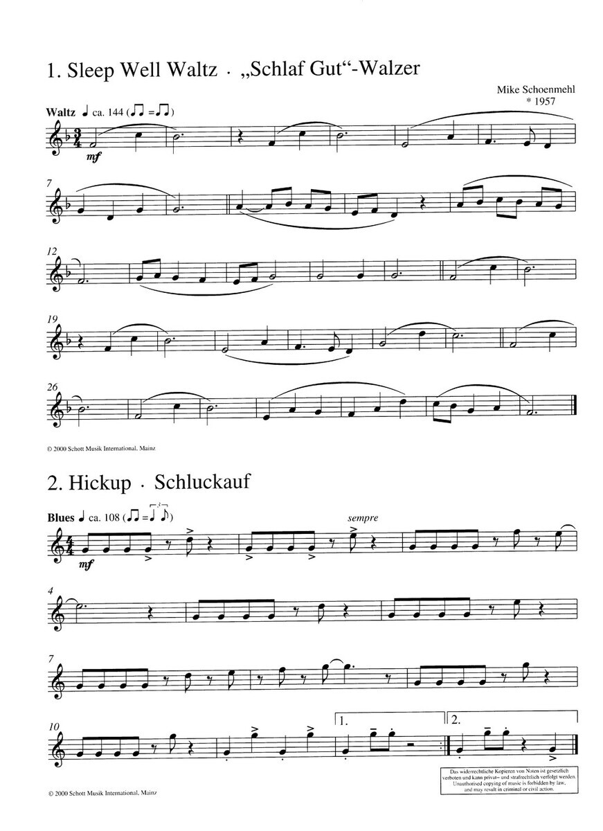 Sleep Well Waltz / "Schlaf Gud"- WalzerHickup / SchluckaufLes Boulevards de ParisAutumn in Donegal / Herbst in DonegalSlalom Waltz / Slalom WalzerLonely Street / Einsame StrassenMerry-go-round / Auf dem JahrmarktI Miss YouRocking Chair Blues / Schaukelstuhl-BluesOrient-BluesEmpty Bottle / "...wie Flasche leer"A Sunday in the Park / Ein Sonntag im ParkTrip to Nowhere / Fahrt ins NirgendwoJazz Minuet / Jazz MenuettWalkin' with Julian / Spaziergang mit JulianSwingin' Conversation / Swingende UnterhaltungJourney to Faraway Galaxies / Reise in ferne GalaxienMr Pickpocket / Herr LangfingerPaellaBetty's GospelGymnastics / TurnstundeStairclimbing / TreppensteigenBirds in Springtime / Vögel im FrühlingBlues No.672668Magic Rocks in Ireland / Magische Felsen in IrlandPina Colada