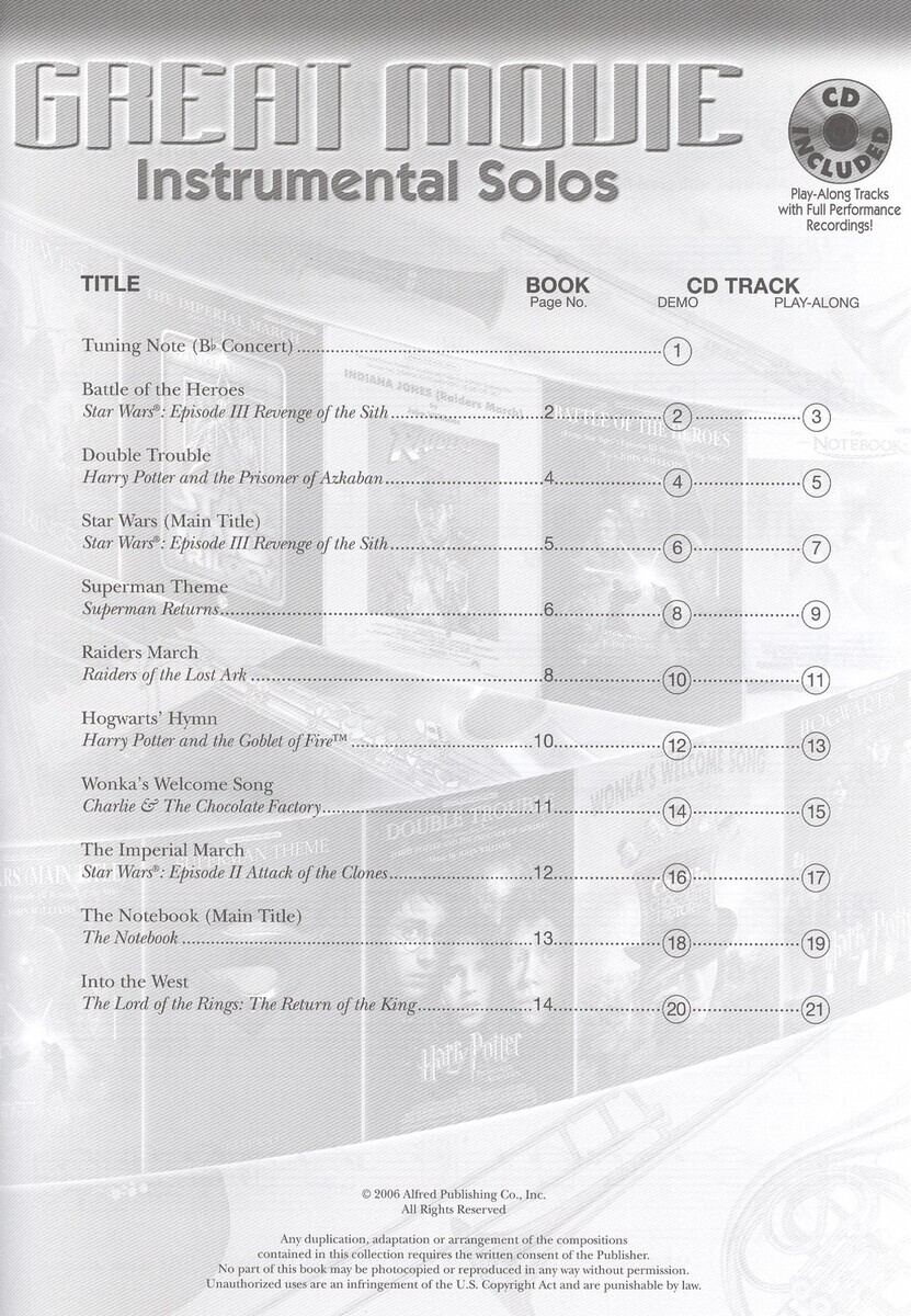 - Série: Great Movie, Alfred's Instrumental Play-Along