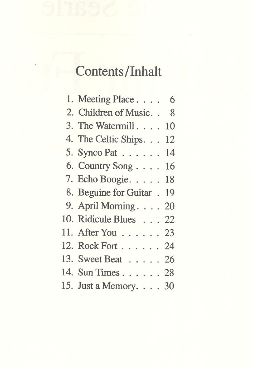 Meeting PlaceChildren of MusicThe WatermillThe Celtic ShipsSynco PatCounty SongEcho BoogieBeguine for GuitarApril MorningRidicule BluesAfter YouRock FortSweet BeatSun TimesJust a Memory