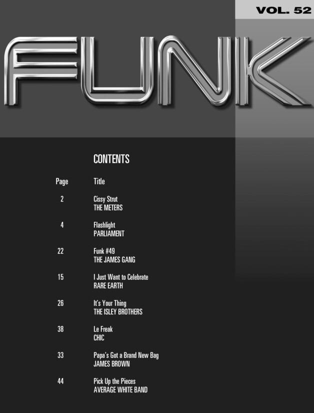 Cissy Strut (THE METERS)Flashlight (PARLIAMENT)Funk #49 (THE JAMES GANG)I Just Want To Celebrate (RARE EARTH)It's Your Thing (THE ISLEY BROTHERS)Le Freak (CHIC)Papa's Got a Brand New Bag (JAMES BROWN)Pick Up the Pieces (AVAREGE WHITE BAND)