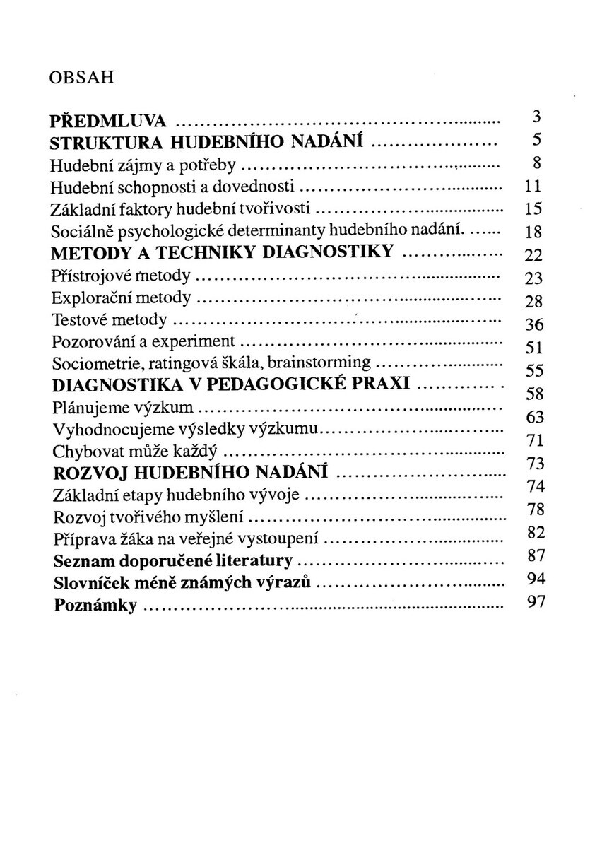 Cílem této studie je poukázat na některé možnosti diagnostiky a rozvoje hudebního nadání. Následující text by mohl poskytnout čtenáři informace a podněty pro jeho další tvořivou práci v této oblasti.