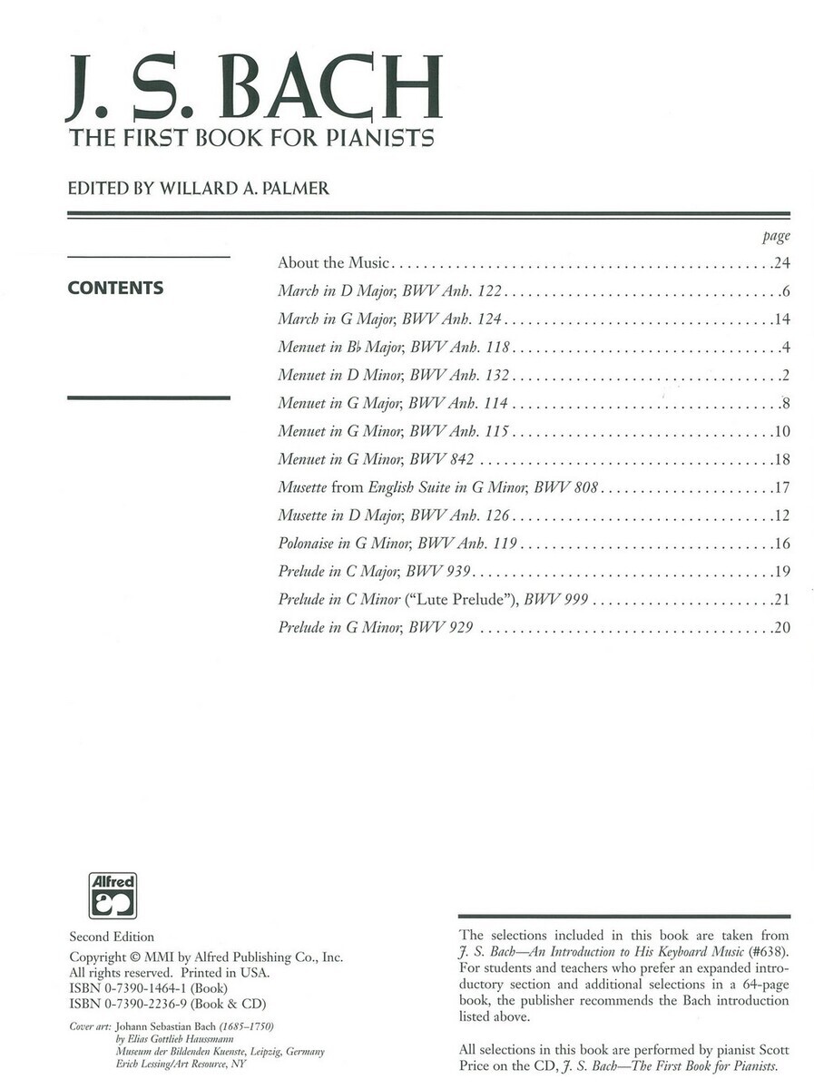 Menuet in D MinorMenuet in Bb MajorMarch in D MajorMenuet in G MajorMenuet in G MinorMusette in D MajorMarch in G MajorPolonaise in G MinorMenuet in G MinorMusette from English Suite in G MinorPrelude in C MajorPrelude in G MinorPrelude in C Minor