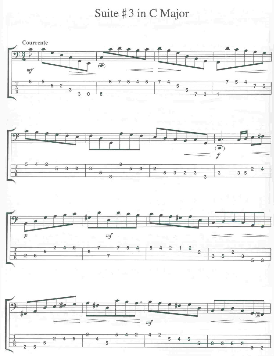 J. S. Bach for Bass + Audio Online / basová kytara + tabulatura