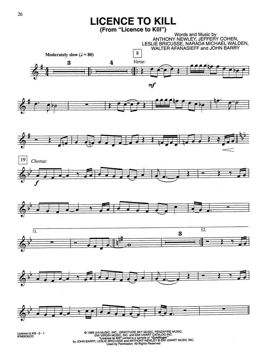 Zajímavá kolekce hlavních filmových melodií z mnoha filmů série JAMES BOND 007. Všechny sešity této série pro dechové nástroje jsou vzájemně kompatibilní a jednotlivé nástroje mohou hrát spolu nebo jako sólo. Skladby v sešitě jsou napsány v nepříliš náročném aranžmá (obtížnost 3+) s plně orchestrálním doprovodem na CD. Na přiloženém CD je každá skladba nahrána jednou a to povedený a dobře čitelný doprovod pro Vaši hru. Stačí si vybrat skladbu, trošku ji pocvičit a můžete začít hrát. Lze dokoupit sešit s klavírním doprovodem.