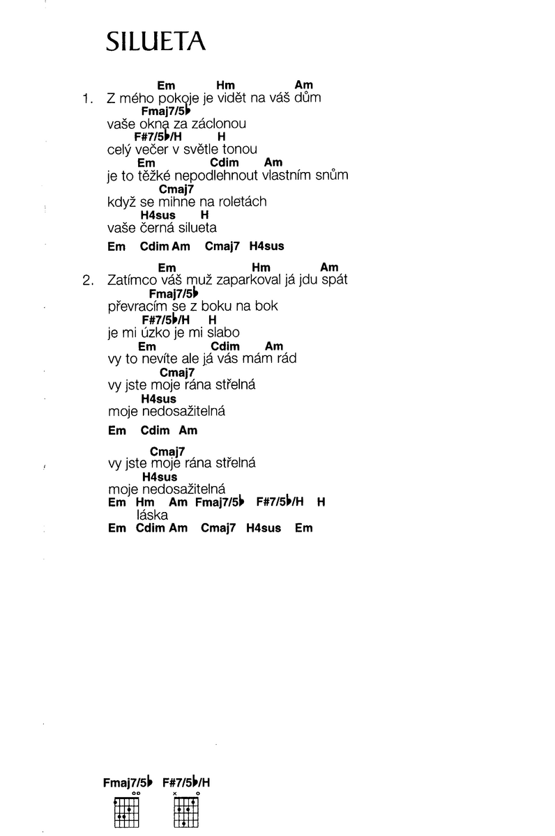 - hudební úprava: klavír / zpěv / akordy