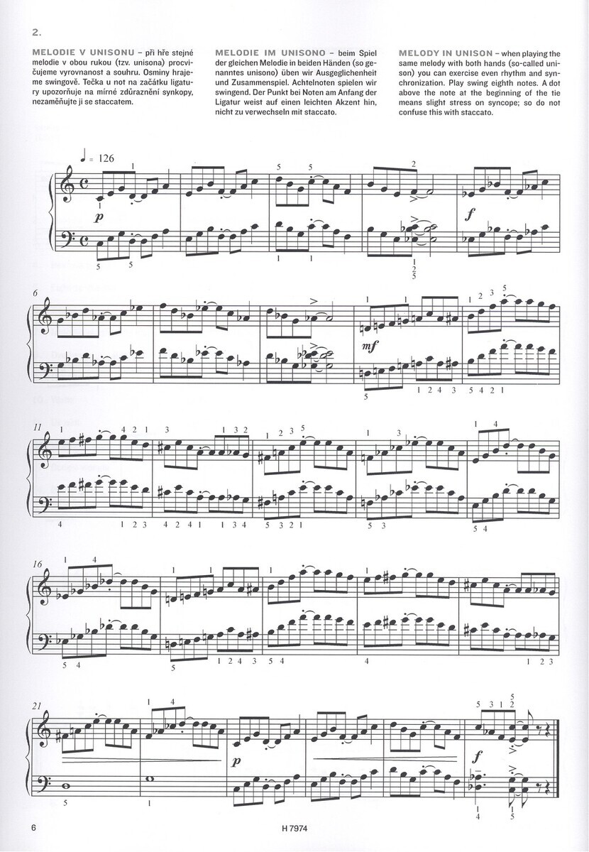 Hra stupnicMelodie v unisonuKráčející basBeatová figuraEight-to-the-barTriolyMelodie ve středním hlaseDvojhmatyHra v blokuWaltzDo pětiValčíkBoogie WoogieBlues in CBlues in F