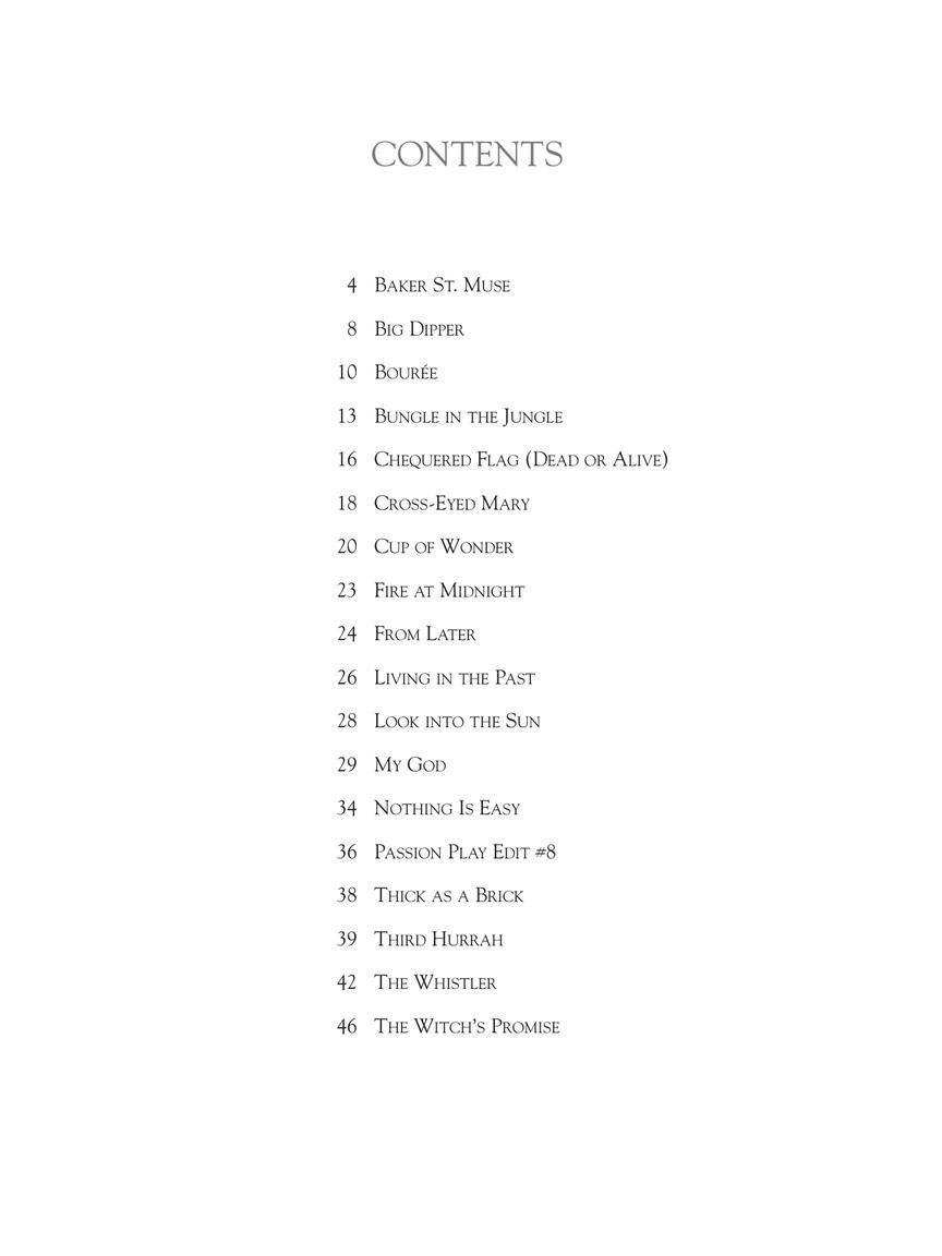 Baker St. MuseBig DipperBoureeBungle In The JungleChequered Flag (Dead Or Alive)Cross-Eyed MaryCup Of WonderFire At MidnightFrom LaterLiving In The PastLook Into The SunMy GodNothing Is EasyPassion Play Edit #8The WhistlerThe Witch's PromiseThick As A BrickThird Hurrah