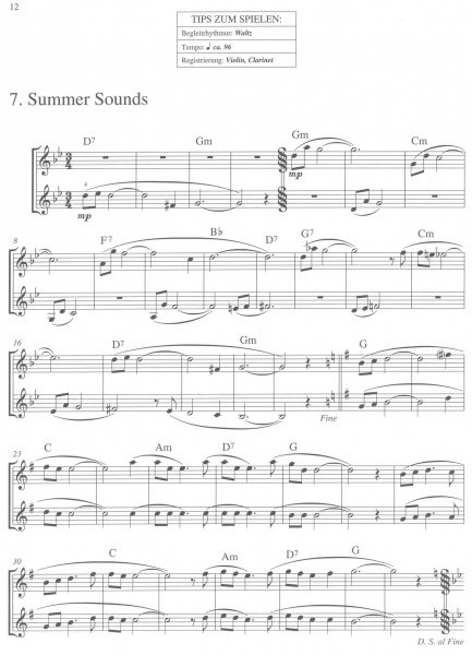Patnáct jednoduchých duet pro hráče na klávesové nástroje. Skladby v sešitě jsou v úpravě melodická linka a akordové značky, kde první řádek je napsán pro první klávesy a druhý řádek pro druhé klávesy. U každé skladbičky je uvedeno tempo skladby, rytmus skladby a rejstřík(zvuk) se kterým by skladby měla být hrána.