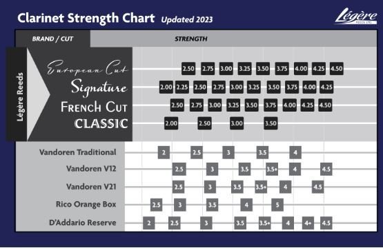 Série French Cut pro Bb klarinet je rozšířením portfolia plátků Légère. Použitím stejné pokročilé technologie materiálů, jako u plátků Signature, European a American Cut, nyní French Cut dává hráčům nové možnosti optimalizace jejich tónu, odporu a zvuku. Je zvukově tmavý, centrovaný a rezonantní, dodává bohatost a stabilitu v tónu s jistým množstvím odporu. Vhodný pro klasickou orchestrální hudbu.