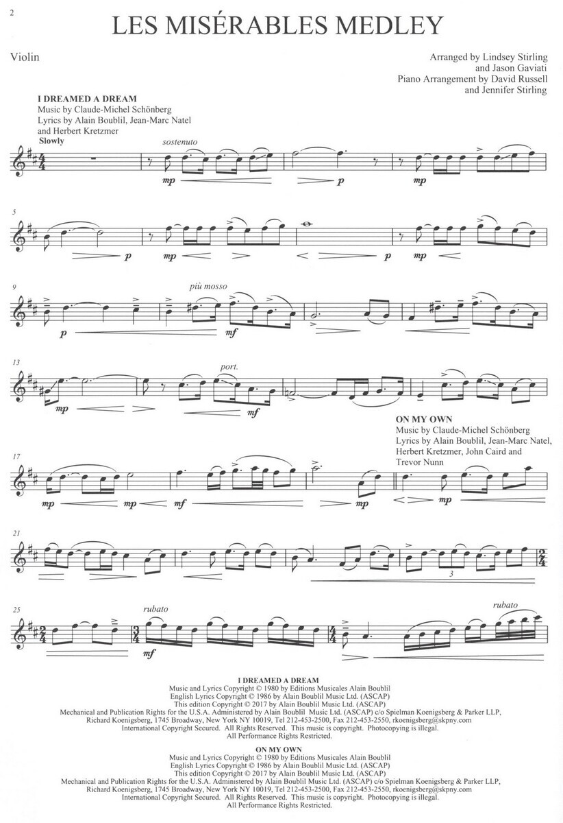 Lindsey Stirling (*1986) je úžasná americká houslistka, tanečnice a skladatelka - a to všechno najednou! Tento titul Vám nabízí mix melodií z velmi úspěšného a populárního muzikálu Les Misérables (Bídníci) v povedeném aranžmá pro housle a klavír od Lindsey Stirling. Sešit obsahuje klavírní doprovod plus samostatně vložený part pro housle.