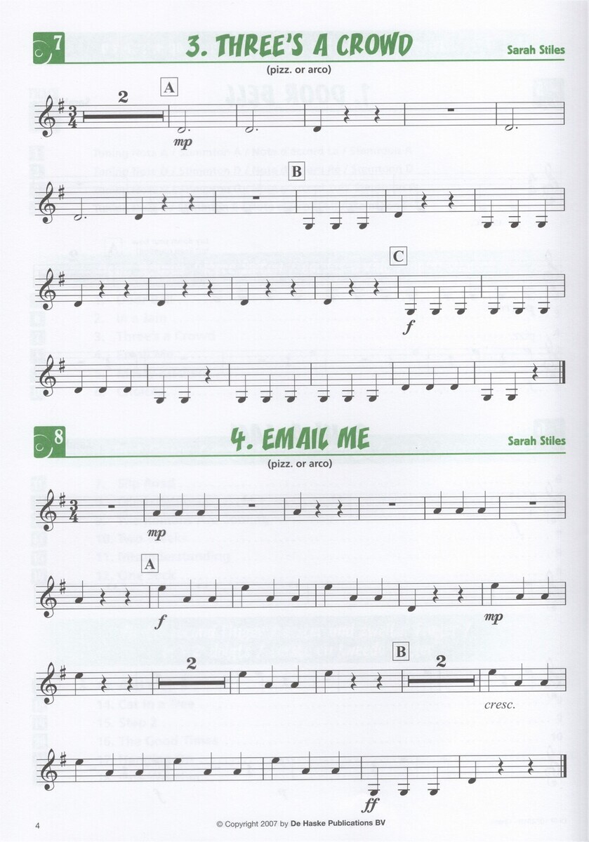 MINI QUARTETS je příjemný titul obsahující 18 originálních a jednoduchým houslových quartet pro nejmenší houslisty. Všechny skladbičky jsou napsány pro hru v první pozici a to pouze s použitím otevřených strun a prvního a druhého prstu. Sešit je vhodný jak pro skupinovou výuku, tak pro první vystoupení Vašeho houslového souboru a měl by zábavnou formou uvést mladé houslisty do světy skupinové hry a hry v souboru. Na přiloženém CD jsou všechny skladby nahrány v uvedeném aranžmá pro Vaší lepší představu o v sešitě uvedených skladbách. Titul obsahuje partituru včetně všech rozepsaných hlasů. Zajímavé !!!