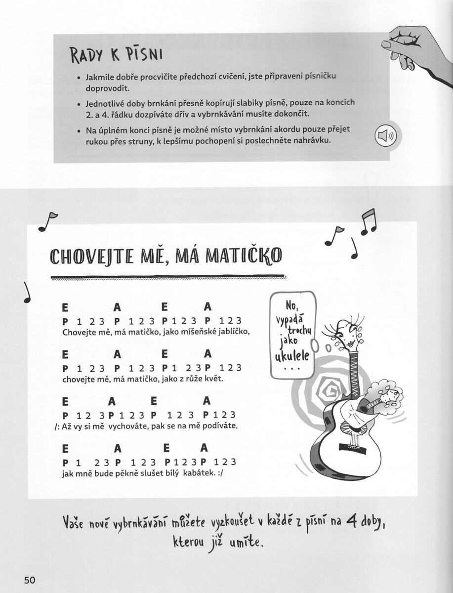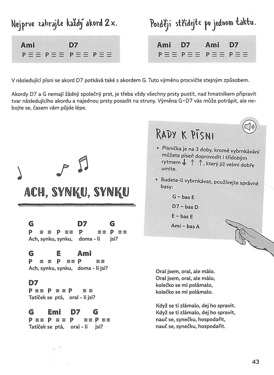 „Tuto učebnice jsem vytvořila pro usnadnění Vašich kytarový začátků. Nezáleží na vašem věku či vzdělání, záleží pouze na touze naučit se hrát tak, abyste dokázali doprovodit vaši oblíbenou písničku. Kytara je geniální nástroj právě v tom, že je potřeba především vaše odhodlání vzít ji do ruky, přemluvit vlastní zpočátku neohrabané prstíky, aby se správně poskládaly na struny, a začít hrát. Učebnice je vhodná pro děti i dospělé, a díky obrázkům a nahrávkách brzy pochopíte, jak máte správně hrát. V knize najdete nahrávky, které si stáhnete v sekci Ke stažení.