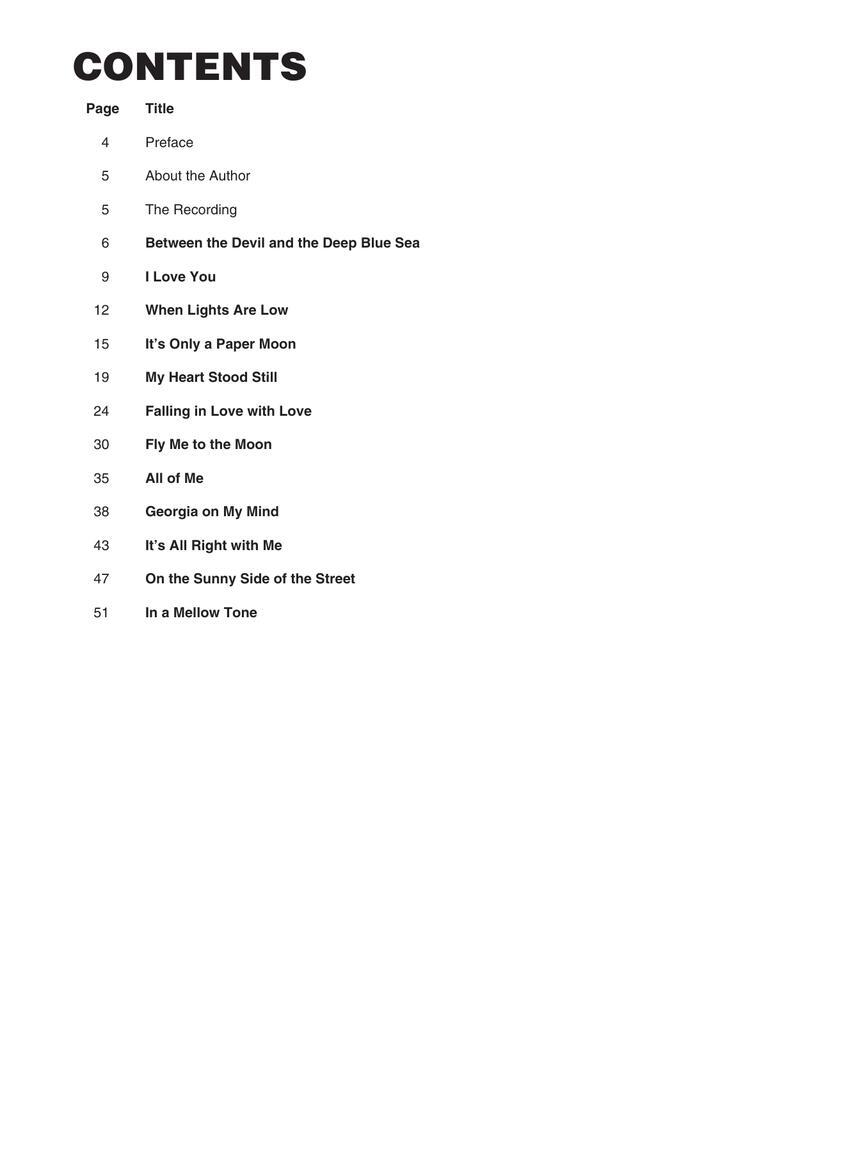 Between The Devil And The Deep Blue SeaI Love YouWhen Lights Are LowIt's Only A Paper MoonMy Heart Stood StillFalling In Love With LoveFly Me To The Moon (In Other Words)All Of MeGeorgia On My MindIt's All Right With MeOn The Sunny Side Of The StreetIn A Mellow Tone