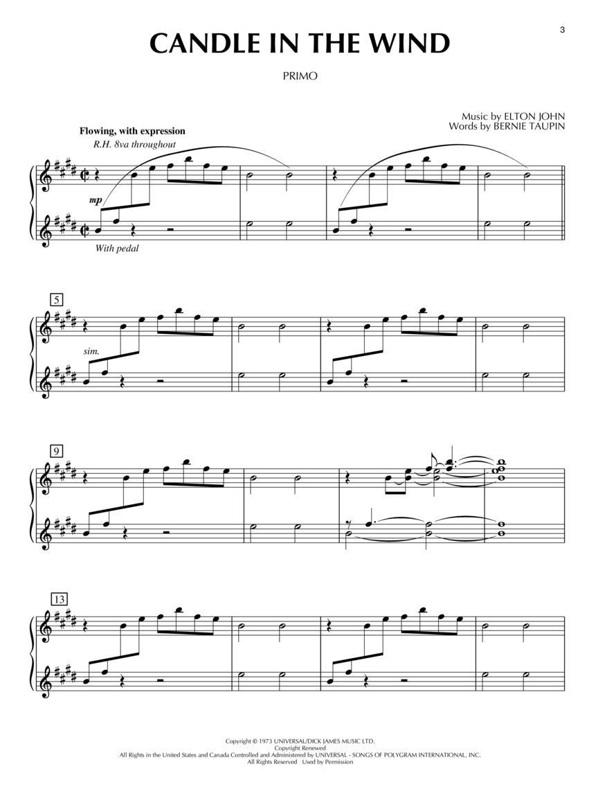 Candle In The WindChopsticksDon't Know WhyEdelweissGoodbye Yellow Brick RoadHeart And SoulLet It BeLinus And LucyYour Song