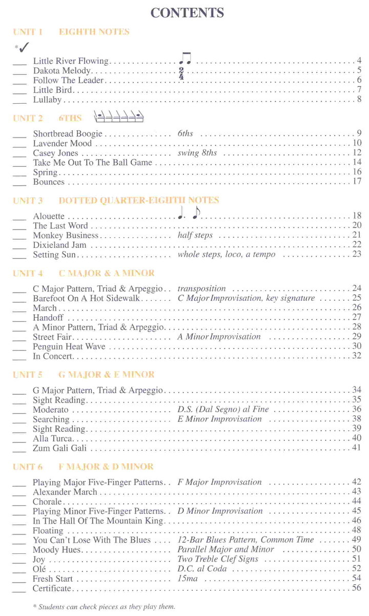 Chcete vědět jak se učí na piano jinde, chcete zjistit jeslti to nádodou nedělají někde lépe nebo chcete vyzkoušet něco jiného než klavírní školu, kterou doposud používáte? Nyní máte vynikající příležitost vyzkoušet zatím u nás nevyzkoušené a objevit zatím neobjevené. Titulysérie Hal Leonard Student Piano Library jsou výborně zpracovné a skvělé připravené tituly napsané v pěti za sebou navazujících obtížnostech a navíc jsou doplněny CD, na kterém jsou všechny všechny skladbičky, motivy, nápěvy a cvičení nahrány, aby měl žák představu o skladbě a mohl si ji zahrát s nahrávkou na přiloženém CD. Většina skladeb je doplněna o doprovod pro učitele. Jednotlivé obtížnosti obsahují několik sešitů pro danou obtížnost a například Lesson (lekce), Technique (technika), Solos (přednesové skladby a skladbičky) a případně další přednesové sešity v dané obtížnosti..Všechny sešity jsou velmi pěkně graficky zpracovány, včetně hudebních doplňovaček, hádanek a kvízů. Chcete-li Vaše žáky učit příjemnou a zábavnou formou, pak Vám v tom bude tato série velmi zdatně pomáhat!!! Výborné, výborné, výborné !!!