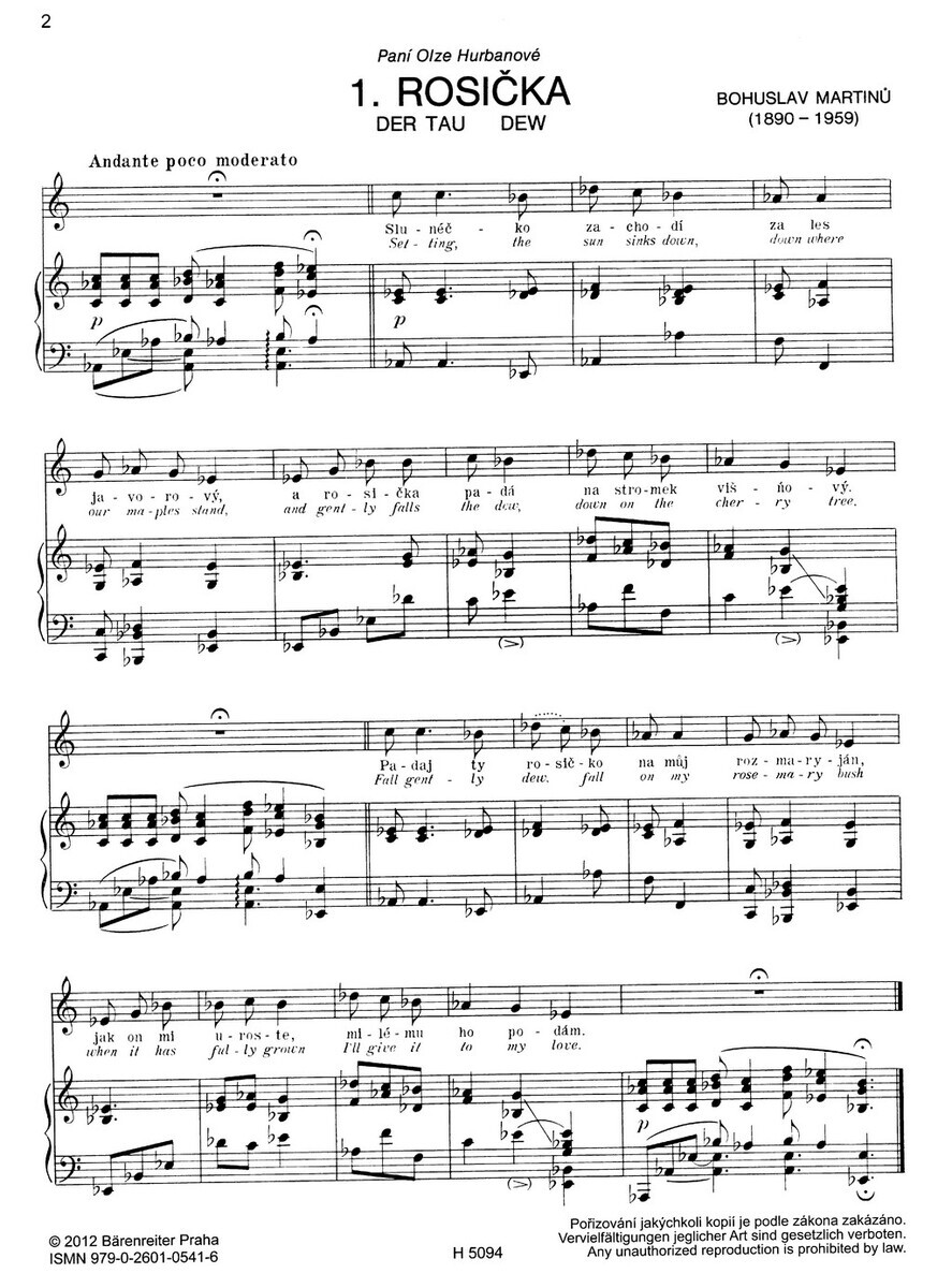 Rosička / DewOtevření slovečkem / The lockCesta k milé / Journey to the belovedChodníček / The foot pathU maměnky / At homeSen Panny Marie / The dream of the virgin maryRozmarýn / Rosemary