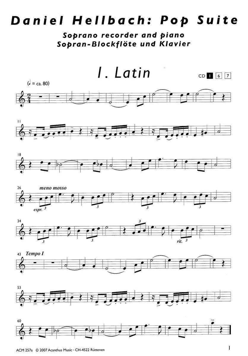 Pop Suite Vám přináší pět originálních skladeb různých hudebních stylů pro zobcovou flétnu a klavír. Sešit obsahuje klavírní doprovod plus samostatně vložený part pro zobcovou flétnu. Na přiloženém CD jsou všechny skladby nahrány 2x,  v plném znění a podruhé v pouze klavírní doprovod pro Vaši hru. Některé rychlejší skladby mají na CD nahrány doprovod také v pomalejším (cvičném) tempu pro jejich snadnější nácvik.