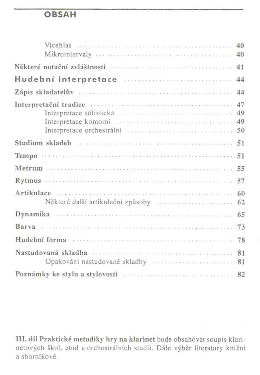 Třídílná publikace, která seznamuje čtenáře s klíčovými problémyvýuky hry na klarinet, jakv počátečním stádiu na základních uměleckých školách (1. díl),  takv oblasti specializované a profesionální hudebnívýchovy (2. díl).  Třetí díl obsahuje soupisveškeré klarinetové literatury. Publikace, které jsou doplněny řadou konkrétních notových ukázek s metodickými poznámkami, uvítají nejen studenti, ale i pedagogové základních, středních avysokých hudebních škol.