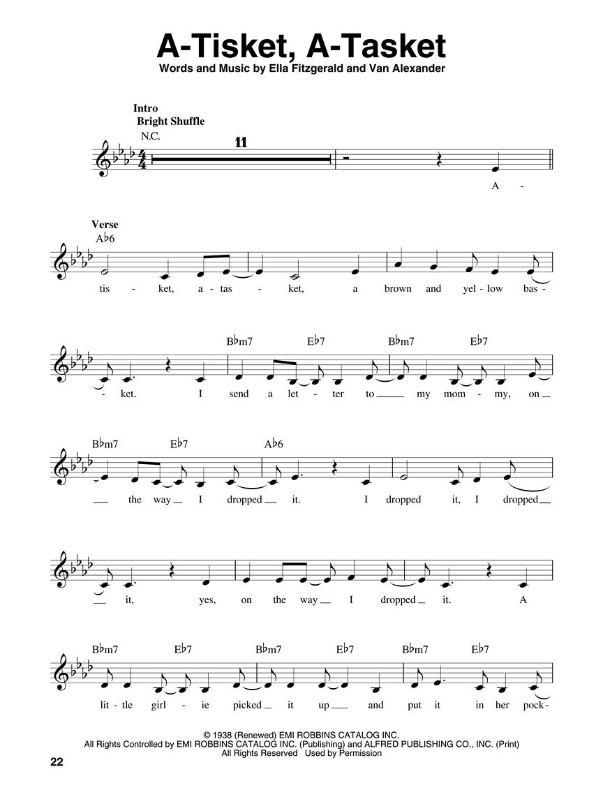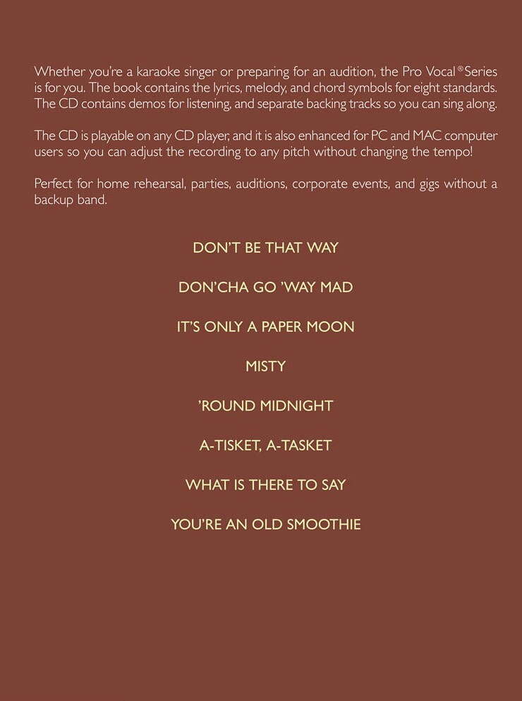 Vynikající titul nyní pro všechny zpěváky - ženy i muže. Výběr jazzových evergreenů, které měla ve svém repertoáru a zpívala jedna z nejznámějších jazzových zpěvaček všech dob ELLA FITZGERALD (1917-1996). Skladby jsou zde nahrány s profesionálním doprovodem na přiloženém CD. Každá skladba je zde nahrána dvakrát. Poprvé tak jak zní a to včetně zpěvu a podruhé pouze skvělý doprovod pro Vášpřednes. Navíc přiložené CD obsahuje program pro PC a MAC, na kterém můžete upravovat rychlost skladby podle Vašich představ. Všechny skladby jsou v úpravě melodická linka, akordové značky a text.