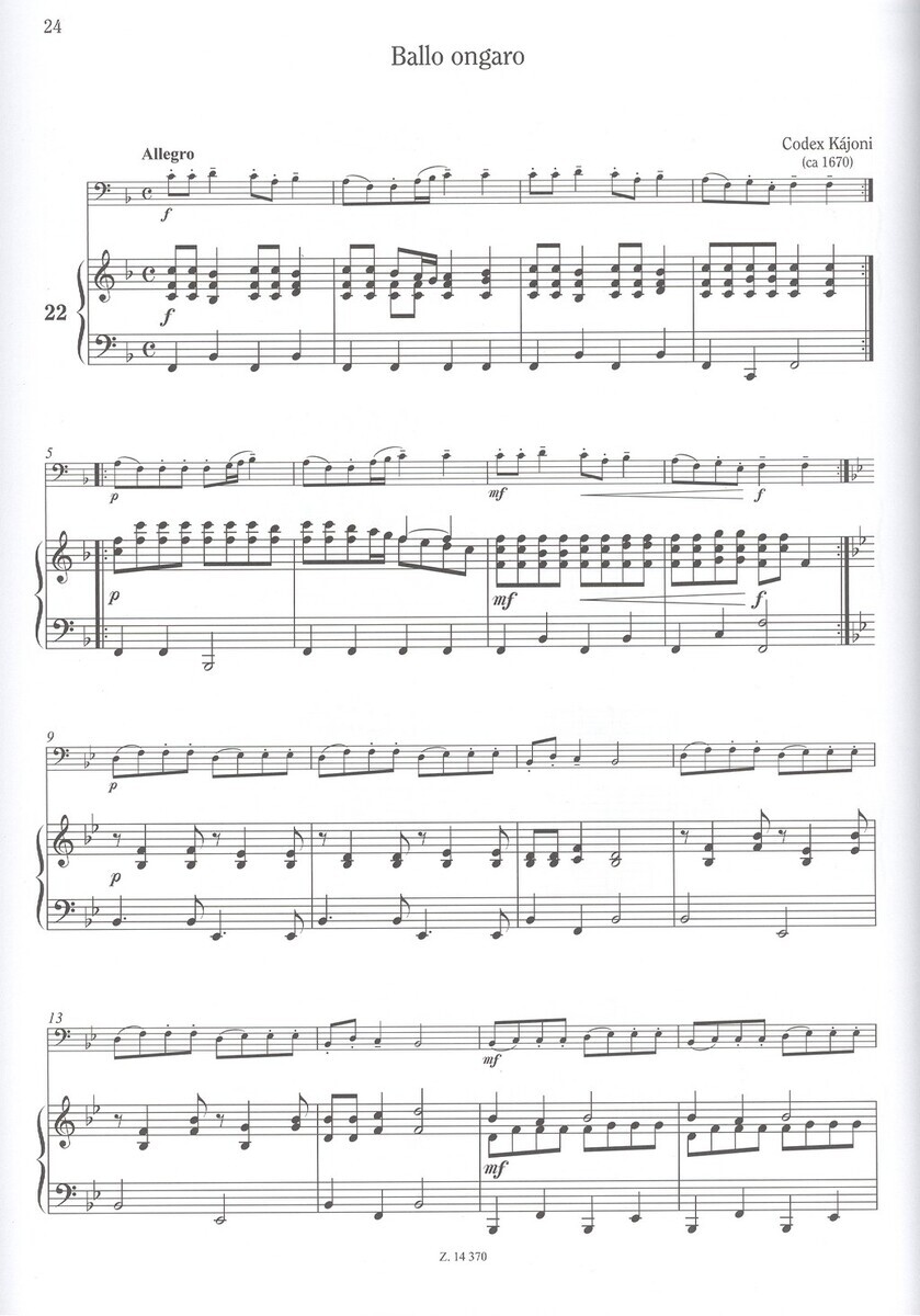 UngarescaNorwegian FolksongJingle bellsWaltz (Weber)Chorale Prelude (Vach)Menuetto (Mozart)A Little Piece (Schumann)Lullaby (Brahms)Old German DanceLargo (Marcello)Musette (Bach)Allegretto (Bach)Bagatelle (Beethoven)Song (Beethoven)Hungarian FolksongHungarian Folksong (Weiner)French FolksongChorale - Wie wohl ist mir, o Freund der SeelenChorale - Gib dich zufrieden und sei stilleAria from The MAgic Flute (Mozart)Chorea hungaricaBallo ongaroHerman Dance (Beethoven)BergamascaFrench DanceCanarie (Hove)French LullabyGerman FolksongGreensleevesRigaudon (Purcell)Gavotte (Corelli)Ecossaise (Beethoven)German Dance (Mozart)German Dance (Beethoven)Air (Lully)Waltz (Schubert)Sarabanda (Händel)Sonatina (Händel)Grave (Telemann)Sarabanda (Corelli)Menuetto (Haydn)Aria (Pergolesi)Bourrée (Bach)Menuet (Bach)Minuetto (Mozart)Menuet (Haydn)Song (Haydn)Waltz (Schubert)Melody (Kazacsay)The Little Bear Learns to Walk (Arányi)Adagio (Händel)Sarabande (Händel)Menuett (Bach)Gavotte (Bach)Passepied (Bach)