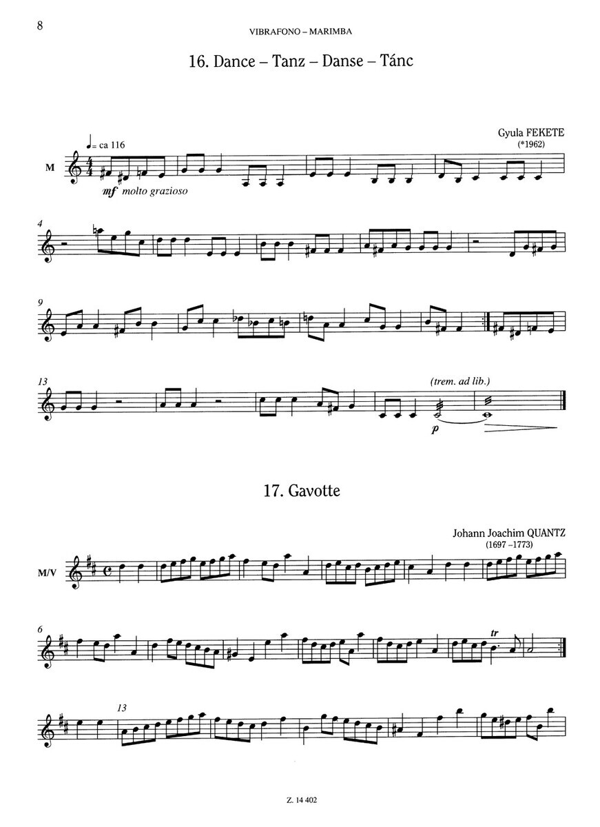 Repertoire for Music Schoolje série titulů, která Vám nabízí výběr skladeb především klasické hudby, které jsou svým obsahem a obtížností vhodné prožáky a studenty hudebních škol a pro jejich vystoupení, koncerty a soutěže. Tento titul obsahuje 50 skladeb vúpravě pro vibrafon nebo marinbu s klavírním doprovodem. Sešit obsahuje klavirní doprovod plus samostatný part pro sólový nástroj.