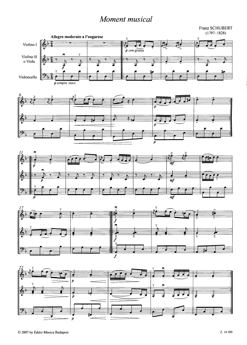 ROMANTIC TRIO MUSIC (1st violin, 2nd violin nebo viola, cello) je výběr skladeb od Schubert, Mendelssohn, Brahms, Tchaikovsky, Chopin, Rossini a Grieg. Všechny skladby jsou v příjemné jednoduché úpravě (první pozice), ale jejich správné provedení vyžaduje od hráčů správnou kontrolu hry smyčcem. V sešitě uvedené tituly jsou velmi dobrou a zajímavou možností pro mladé hudebníky zahrát si známé skladby, které byly doposud určeny pouze zkušeným a pokročilým hudebníkům. Titul obsahuje partituru včetně všech rozepsaných hlasů. Zajímavé !!!
