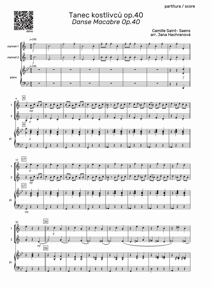 Nyní Vám tuto známou a oblíbenou skladbu přinášíme ve snadném aranžmá pro dva klarinety s klavírním doprovodem.