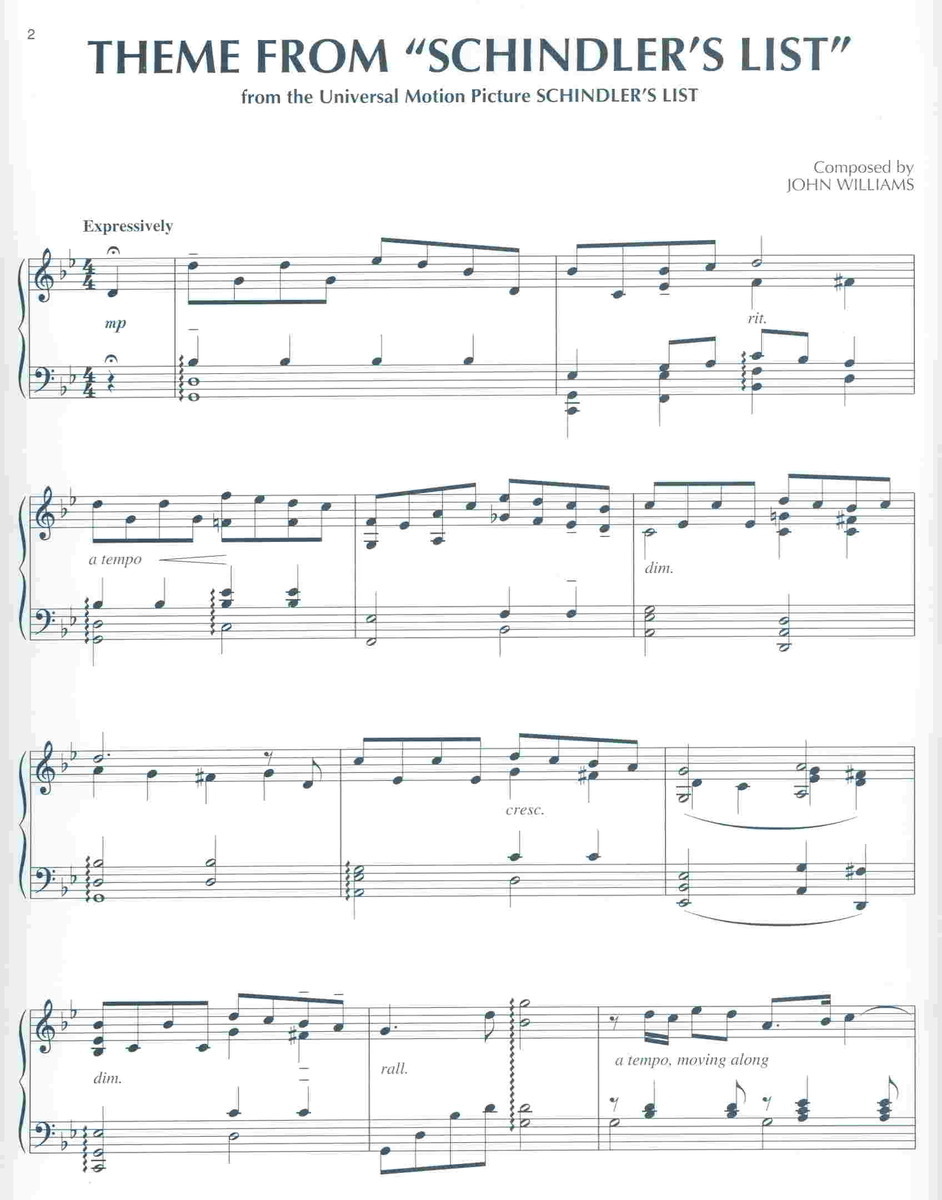 SCHINDLER'S LIST, theme from motion picture piano solo