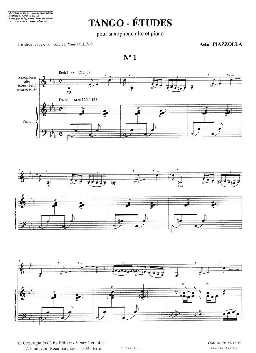 ASTOR PIAZZOLLA - TANGO ETUDES / altový saxofon (nebo klarinet) a klavír