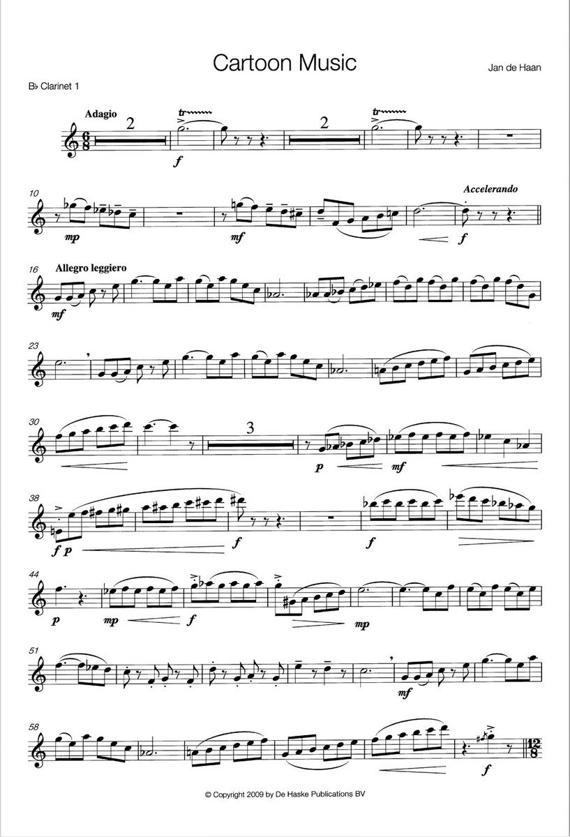 Skladba "Cartoon Music" svou energií, živelností a nadšením připomíná hudbu z kreslených filmů. Skladbu napsal nizozemský skladatel Jann de Haan a přinášíme Vám ji v povedeném aranžmá pro čtyři klarinety.
