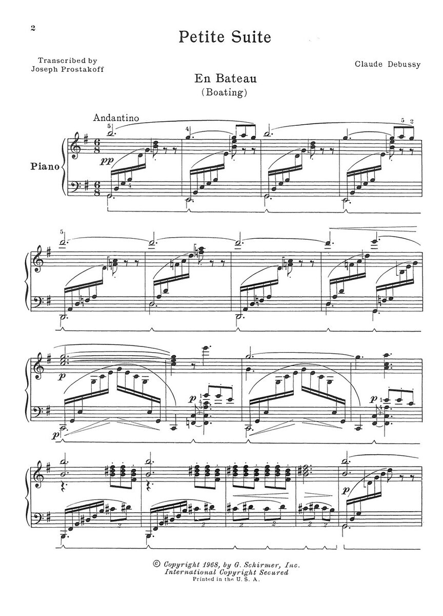 „Petite Suite“ (Malá suita) od Clauda Debussyho byla původně napsaná pro čtyřruční klavír. Nyní Vám tuto čtyřdílnou suitu přinášíme v úpravě pro sólový klavír od Josepha Prostakoffa. Skladby odrážejí Debussyho raný styl, který kombinuje elegantní melodie s jemnou harmonií, a jsou méně impresionistické než jeho pozdější tvorba.  Petite Suite je ideální pro středně a více pokročilé klavíristy, kteří chtějí obohatit svůj repertoár o dílo klasické francouzské hudby.