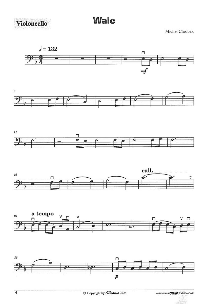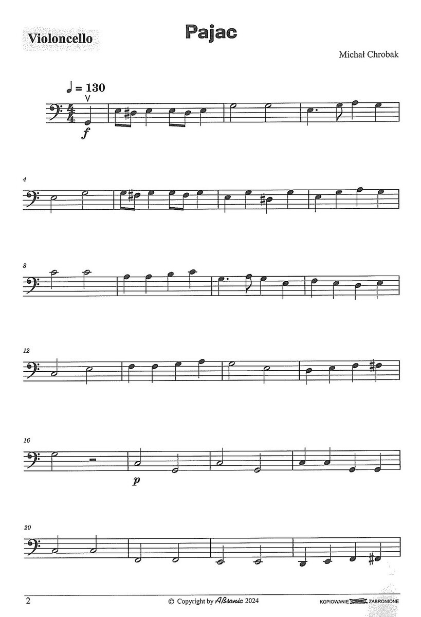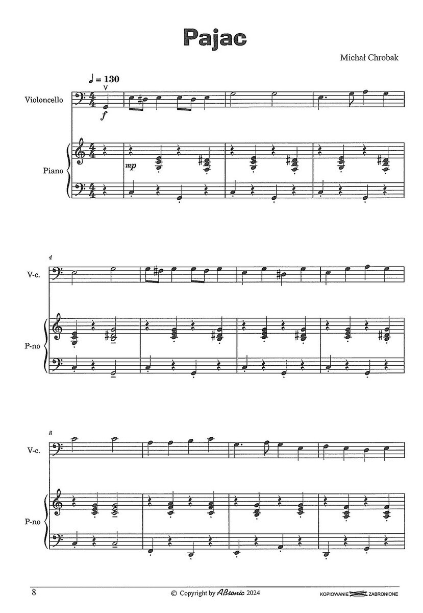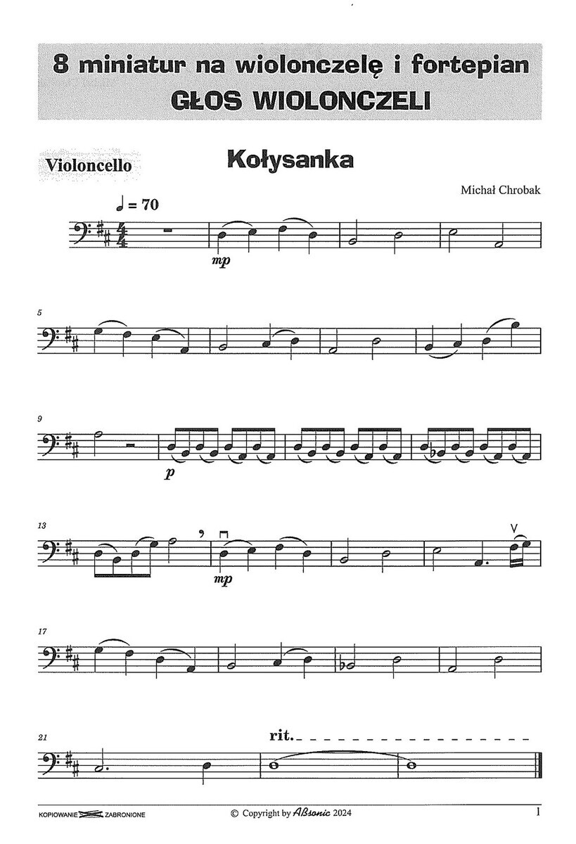 Sbírka osmi jednoduchých skladeb pro violoncello a klavír, které polský skladatel Michał Chrobak napsal pro začínající hráče na violoncello.  Skladby jsou stylově rozmanité – lyrické, hravé, někdy i s nádechem folklóru či představy fantazijního světa a cíleně podporují rozvoj techniky, smysl pro frázování i schopnost hudební komunikace (vzájemného naslouchání) mezi hráčem na violoncello a klavíristou.  Technická náročnost je přiměřená a podporuje budování základních dovedností jako jsou intonace, rytmické cítění, dynamickou citlivost a zároveň baví svým příběhem a melodičností.